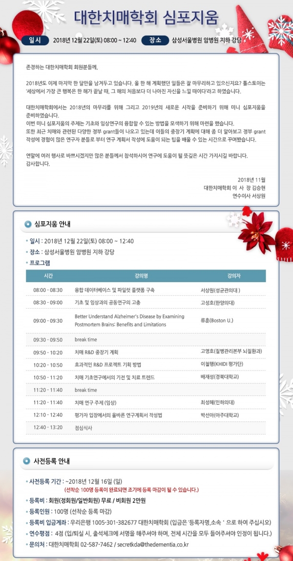 대한치매학회가 한해를 마무리하는 작은 심포지엄을 개최한다.