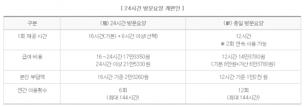 1월부터는 1회 최소 이용시간이 12시간으로 조정되며, 2회 연속 서비스가 가능한 ‘종일 방문요양’으로 개편, 이를 통해 수급자 가족의 돌봄 부담이 가벼워진다.