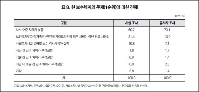 사회복지 종사자의 경제적 안정과 사기 진작, 서비스 질적 수준 제고, 전문 인력 유치와 장기근속을 위해서는 적극적인 개선 조치가 필요하다는 진단이다.