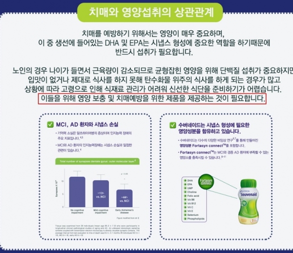 또 관련 홍보물의 전반적인 광보 내용을 조합하면 수버네이드만이 치매예방 및 지연에 가장 좋은 효과가 있다고 광고하고 있음을 알 수 있다는 설명이다.