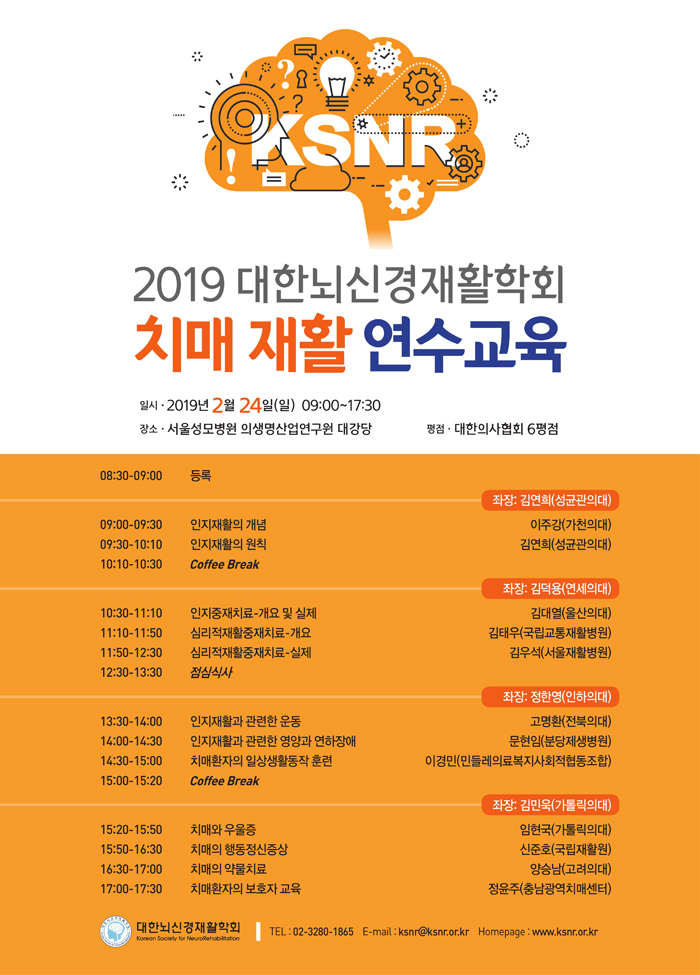 이날 연수교육에서는 인지재활의 개념부터 치매와 우울증 등 다양한 주제가 마련됐으며, 대한의사협회 평점 6점이 부여된다.