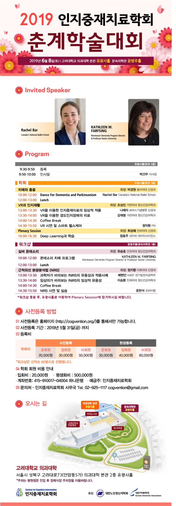사전등록은 오는 5월 31일까지며, 사전등록은 인지중재치료학회 홈페이지를 통해 가능하다.