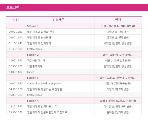 치매학회는 혈관치매와 연관된 영상검사의 해석기초부터 진단, 치료, 예방까지 치매에 처음 입문하는 사람들도 알기쉬운 강의로 구성했다고 설명했다.