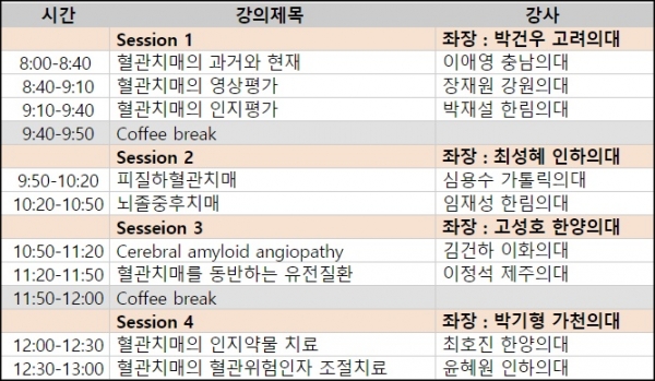 치매학회는 "혈관치매는 서구보다는 동양에 더 많다고 알려져 있다. 정확히 진단하고 치료한다면 진행을 막을 수 있고, 혈관인울 통해 예방이 가능하다"며 "영상검사부터 해석의 기초, 진단 등 다양한 강의가 준비됐다"고 말했다.