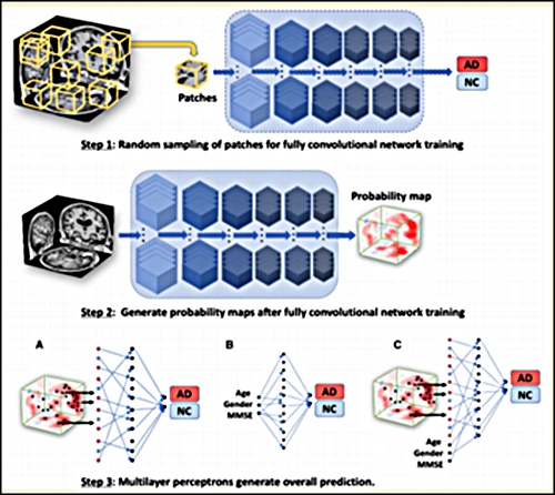 알츠하이머병 환자와 정상인에 대한 정보를 통해 학습된 ‘딥 러닝’ 기법으로 환자의 뇌 MRI, 연령, 성별, 그리고 MMSE (Mini Mental State Examination, 간이정신상태검사) 점수 등의 정보를 분석하여 알츠하이머병을 정확하게 진단했다.