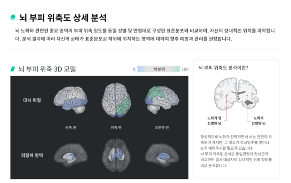 해당 시스템은 뇌 위축도와 백질변성 영역의 부피를 정확하게 수치화해 임상의의 치매 진단 편의성을 높이고, 영상판독의가 육안으로 구분하기 어려운 뇌위축까지도 신속하게 판단할 수 있도록 지원한다.