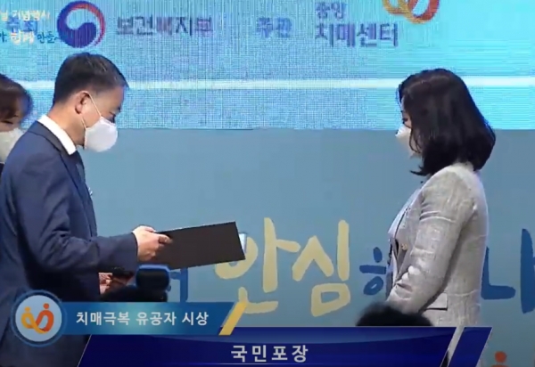 이와 함께 체계적인 치매관리 시스템 구축과 환경 조성을 위해 노력해 치매관리 사업에 기여한 점을 인정받았다.