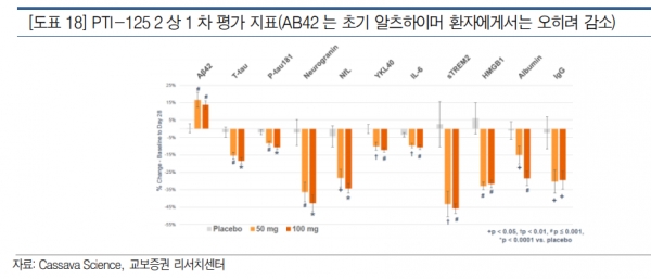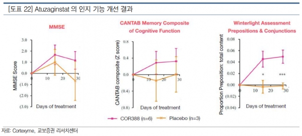이 같은 기전이 실질적으로 ADAS-Cog, ADCS-ADL와 같은 알츠하이머 환자의 인지 능력 지표를 개선할 수 있을지 투자자들의 관심이 모아지고 있다.