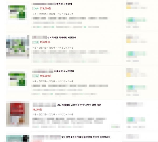 그럼에도 국내 제조를 통해 판매하는 건기식은 물론 해외 직구제품 등도 치매 예방, 치매 영양제, 치매 개선을 표방하며 인터넷에서 판매되는 사례가 다수다.