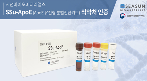 분자진단 전문기업인 시선바이오머티리얼스는 알츠하이머 발병 유전자로 알려진 아포리포프로테인 E(Apolipoprotein E, ApoE) 유전형을 신속, 간편하게 분별하는 ‘에스에스유 아포E (SSu-ApoE)’ 진단키트가 식품의약품안전처로부터 체외진단의료기기 인증을 받았다고 23일 밝혔다.