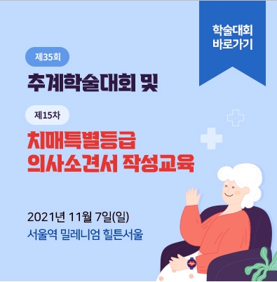 대한노인의학회가 오는 11월 7일 제35회 추계학술대회와 제15차 치매특별등급 의사소견서 작성교육을 온라인-오프라인에서 개최한다.