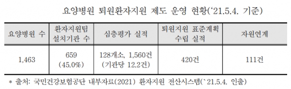 요양병원의 장기입원을 막기 위해 퇴원환자 지원제도를 운영하고 있지만, 효과가 상당히 미미한 것으로 나타났다.