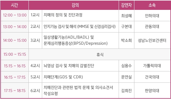 학회원 중 신경과-정신건강의학과 전문의와 2009-2013년 치매진료의사 전문화교육 이수자는 총 6시간 강의 중 6교시인 '치매진단과 관련된 법적 문제 및 의사소견서 작성 요령' 1시간 강의를 이수하면 수료증 발급이 가능하다.
