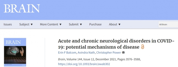 <논문> Erin F Balcom, Avindra Nath, Christopher Power, Acute and chronic neurological disorders in COVID-19: potential mechanisms of disease, Brain, Volume 144, Issue 12, December 2021, Pages 3576–3588, https://doi.org/10.1093/brain/awab302.