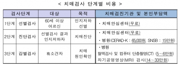 치매 검사비는 치매국가책임제가 시행되면서부터 정부 지원이 이뤄졌다.