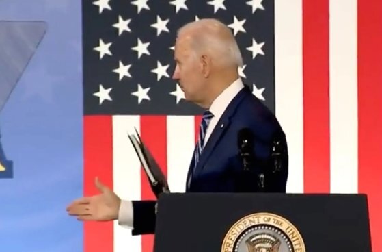 바이든 대통령은 연설 이후 오른쪽으로 몸을 돌려 악수를 청했으나, 주변에는 아무도 없었다. 잠시 후 바이든 대통령은 손을 거둔 뒤 뒤돌아서 잠시 서성이다 무대를 나갔다.