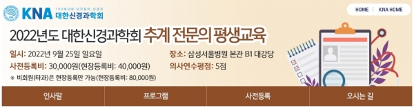 대한신경과학회가 오는 9월 25일 오전 9시부터 삼성서울병원 본관 지하1층 대강당에서 추계 전문의 평생교육을 진행한다.
