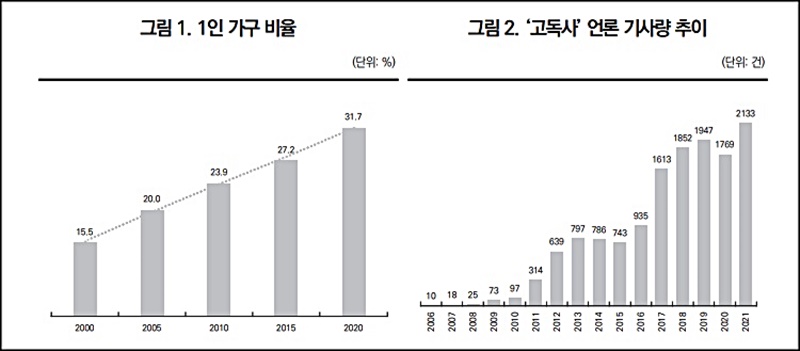 지난 2000년 기준 전체 가구의 15.5%에 불과하던 독거노인은 2020년 31.7%로 빠르게 증가했다. 2020년 독거노인은 158만 9,000여 명으로 2000년 대비 100만 명 이상 늘어난 수치다.