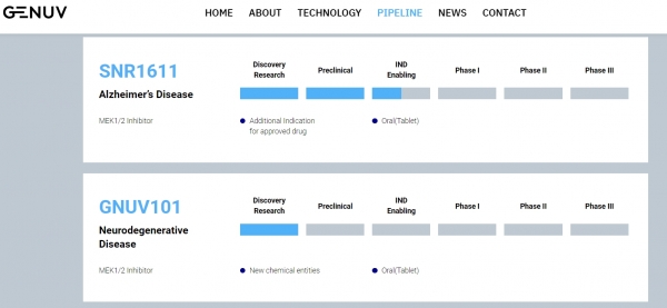해당 연구는 알츠하이머병 및 기타 신경계 장애를 치료하기 위한 목적으로 신약 후보물질 'SNR1611(실험물질명·성분명 트라메티닙)'을 담금질 중인 지뉴브와 한국보건산업진흥원(KHIDI)의 연구지원으로 이뤄졌다.