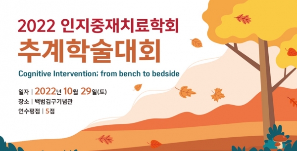 인지중재치료학회는 오는 29일 백범김구기념관에서 2022년 추계학술대회를 오프라인으로 개최한다.