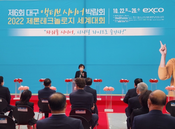 이날 행사에서 박영란 국제제론테크놀로지학회 부회장은 "이번 박람회에서는 사용자 중심으로 제론테크를 연구한 결과들을 발표하고 공유할 계획"이라며 "대구시가 3대 스마트도시가 돼서 더 많은 기업이 대구를 지속해서 방문하고 앞으로 더 많은 기업들이 함께하기를 희망한다. 우리 학회 역시 대한민국이 고령친화사회로 발전할 수 있도록 노력하겠다"고 말했다.