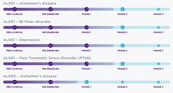 해당 신약 후보물질의 경우 알츠하이머병을 비롯한 양극성장애, 우울증, 외상후 스트레스장애(PTSD) 등에까지 치료 적응증 범위를 폭넓게 잡고 있다.