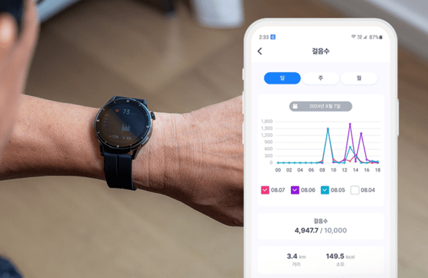 우선은 AI 건강 비서 기능으로 건강 이상 감지 시 자동 통화 연결, 위급상황에서 원터치 긴급 통화 기능, 대화하고 학습하는 AI 어시스턴트, 그룹으로 케어할 수 있는 공유 기능, 실시간 확인할 수 있는 건강 및 위치 정보 기능이 있습니다.