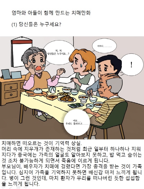 기자였던 엄마는 일본에서 노인복지를 공부했고, 초등학교 2학년이었던 아들은 취재다니는 엄마를 따라다니며 노인요양시설들을 구경했다. 그때 본 치매할머니들과 직원들의 모습이 지금 만화의 소재가 되고 있다. 엄마는 지금 요양서비스플랫폼을 운영하고 아들은 한국예술종합대학에서 미술을 공부하며 치매환자들을 위한 미술치료봉사를 하고 있다.