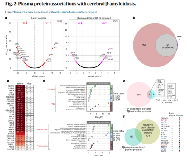 또 치매 위험 유전자인 APOE ε4를 고려하더라도, 여전히 10여 개 단백질은 아밀로이드와 인지 저하와 직접적으로 연관을 보였다. 이는 특정 유전자의 영향을 넘어서 혈액 신호만으로도 치매 위험을 조기에 예측할 수 있음을 보여준다.