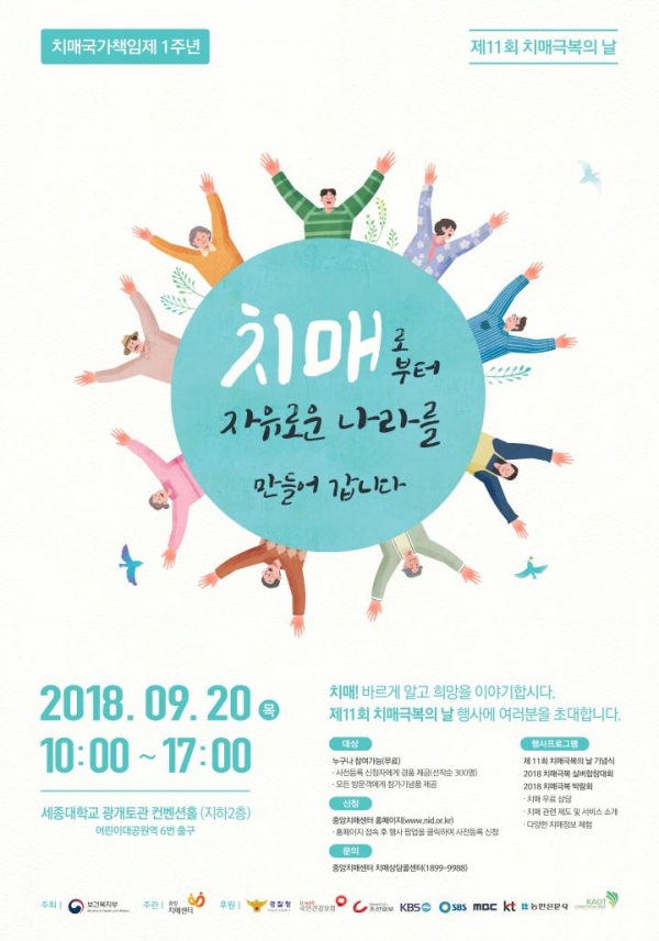 중앙치매센터는 ‘제11회 치매극복의 날 기념행사’를 오는 20일 10시 세종대 광개토관 지하 2층 컨벤션홀에서 진행한다.