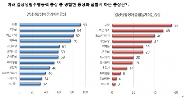 일상생활수행능력 증상 중 가장 큰 부담은 외출