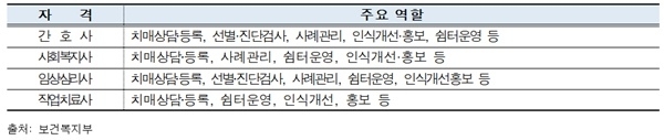 치매안심센터는 간호사, 작업치료사, 임상심리사, 사회복지사 등이 필요하지만 채용은 간호사에만 쏠려있는 것이 현실이다.
