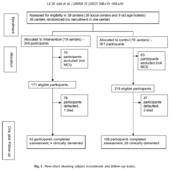 홍콩 내의 38개 기관에 거주하는 65세 이상의 노인 전체 548명 중에서 임상치매척도(Clinical Dementia Rating, CDR) 점수 0.5, 또는 경도인지장애 단계에 해당하는 노인 389명을 대상으로 운동 중재 프로그램을 시행했다.