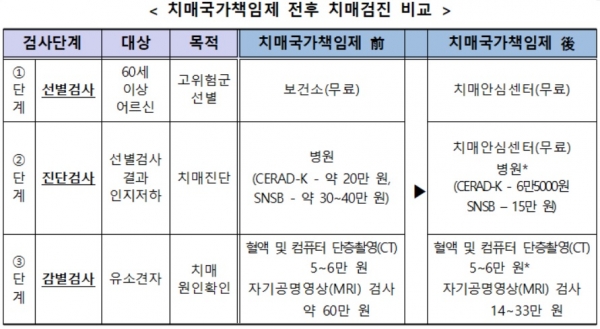치매국가책임제 시행 이후 정부는 치매안심센터에서 선별검사를 받은 노인들 중 치매 고위험군을 선별해 진단검사를 하고 있다.