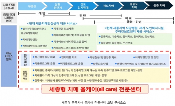 세종시가 추진하는 무증상부터 중증치매 환자까지 관리가 가능한 공공치매 올케어 전문센터에 대한 밑그림이 나왔다.