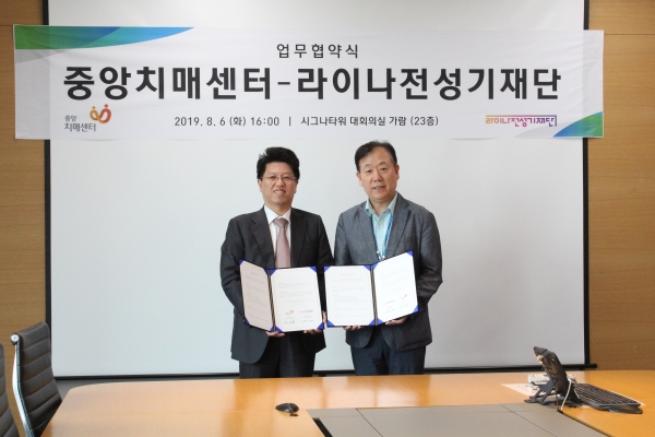 이날 업무 협약식에는 중앙치매센터 김기웅 센터장, 라이나전성기재단 한문철 상임이사 등이 참석했다.