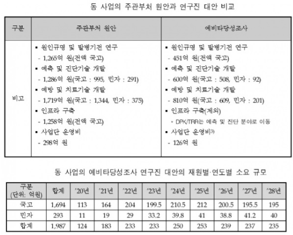 치매극복연구개발사업은 2020년부터 2028년까지 9년 간 국고 1,694억원, 민간 293억원 등 총 1,987억원 투입이 계획돼 있다.