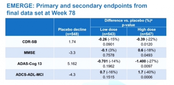 로슈는 아밀로이드베타를 타깃으로 하는 크레네주맙 고용량에 대한 2건의 3상을 진행했으나, 임상에 참여한 환자의 임상치매척도 박스 총점(CDR-SB)가 좋아지지 않은 것으로 확인됐다.