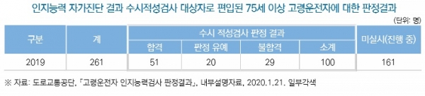 이와 함께 치매안심센터에 등록된 치매의심환자는 수시 적성검사 통보대상에서 누락돼 있어 이를 법적으로 통보할 수 있는 방안 마련도 필요하다고 밝혔다.