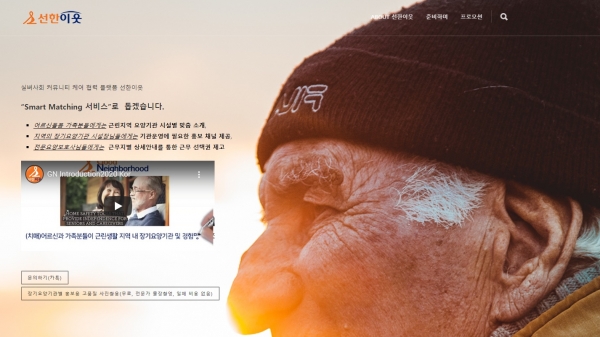 선한이웃은 ▲노인 돌봄 가족에게 근린지역 요양기관 시설별 맞춤 소개 ▲지역 장기요양기관 시설장에게는 기관운영 홍보 채널 제공 ▲전문요양보호사에게는 근무지별 상세안내로 근무 선택권 제고를 기본 기능으로 구성했다.