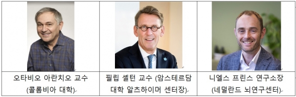 이번에 영입된 자문위원들은 미국 콜롬비아 대학(Columbia University) 알츠하이머 연구센터의 오타비오 아란치오 (Ottavio Arancio, MD, PhD) 교수, 네덜란드 암스테르담 대학(VU Amsterdam)의 알츠하이머 센터장인 필립 셸턴(Philip Scheltens, MD, PhD) 교수, 네덜란드의 글로벌 치매 임상 전문기관인 뇌 연구센터(Brain Research Center)의 니엘스 프린스(Niels Prins, MD, PhD) 연구소장이다.
