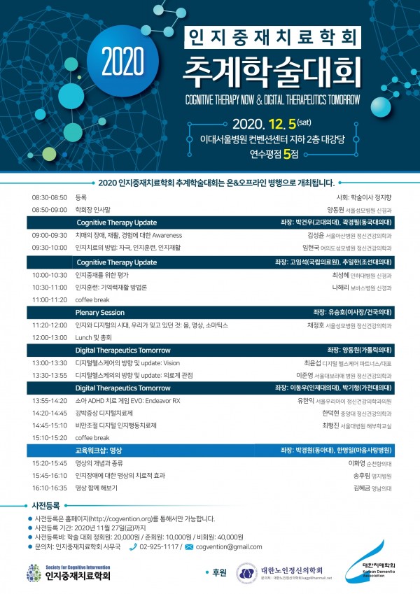 인지중재치료학회가 오는 12월 5일 오전9시 이대서울병원 컨벤션센터 지하2층 대강당에서 추계학술대회를 개최한다.