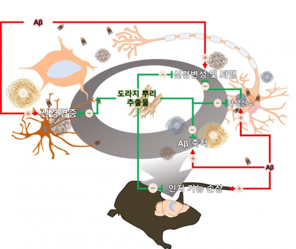 해당 연구를 통해 도라지 뿌리 추출물을 투여한 알츠하이머병 동물모델에서 투여하지 않은 동물보다 증상 완화 효과가 관찰됐다.