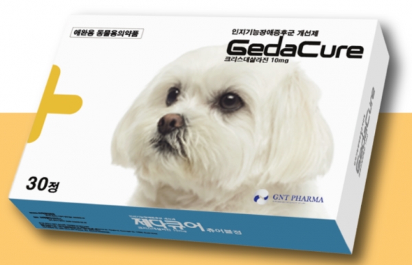 지엔티파마가 개발한 반려견 치매치료제 '제다큐어'(성분명: 크리스데살라진)가 조만간 국내 시장에 판매될 예정이다.