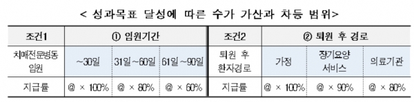 인센티브 금액은 입원 기간과 퇴원 후 경로에 따라 가산율을 차등 적용해 대상 환자가 퇴원한 후에 치매안심센터의 모니터링을 거쳐 사후적으로 최종 지급된다.