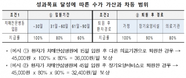 시범사업 보상 내용을 보면, 입원 기간과 퇴원 후 경로를 평가해 일당 최대 4만5,000원 범위 내에서 차등 지급이 이뤄지게 된다.
