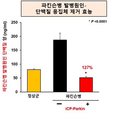 또한 "iCP-Parkin은 단백질제제의 가장 큰 허들인 혈뇌장벽(BBB)을 투과해 뇌조직뿐만 아니라 뇌 신경세포 깊숙한 곳까지 전송돼 파킨슨병을 촉발시키는 알파-시누클레인(α-Synuclein)의 응집체를 완벽히 제거해 운동능력 및 인지기능 회복을 통해 발병 이전 수준으로 뇌신경세포를 다시 일 할 수 있게 회복시키는 치료 효능이 증명된 것"이라고 설명했다.