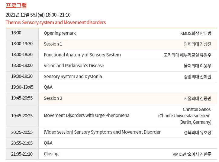 대한파킨슨병 및 이상운동질환학회(KMDS)가 오는 11월 5일 18시부터 온라인 미니심포지엄을 개최한다.