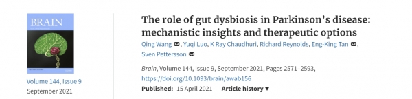 <논문> Qing Wang, Yuqi Luo, K Ray Chaudhuri, Richard Reynolds, Eng-King Tan, Sven Pettersson, The role of gut dysbiosis in Parkinson’s disease: mechanistic insights and therapeutic options, Brain, Volume 144, Issue 9, September 2021, Pages 2571–2593, https://doi.org/10.1093/brain/awab156.