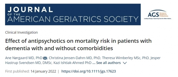 <논문> Nørgaard, A, Jensen-Dahm, C, Wimberley, T, et al. Effect of antipsychotics on mortality risk in patients with dementia with and without comorbidities. J Am Geriatr Soc. 2022; 70( 4): 1169- 1179. doi:10.1111/jgs.17623.